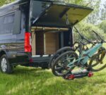 Bagażnik rowerowy EVO to solidne i funkcjonalne rozwiązanie do transportu rowerów na haku holowniczym, zaprojektowane specjalnie z myślą o pojazdach z dużą klapą tylną oraz drzwiami skrzydłowymi – takich jak vany, busy i kampery.