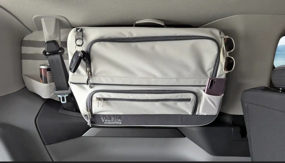 - Optymalne wykorzystanie przestrzeni w vanie – torby montowane w tylnych oknach tworzą dodatkowe miejsce do przechowywania.